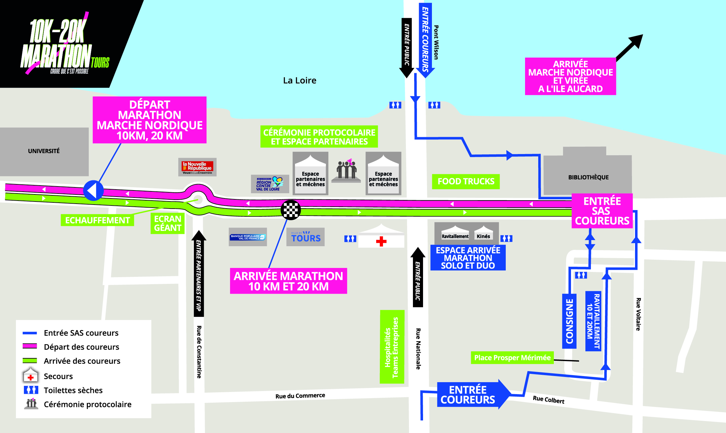 Consulte dès maintenant le plan de la Place Anatole France, pour repérer l'entrée des coureurs, le lieu de départ de ta course, la zone consigne…